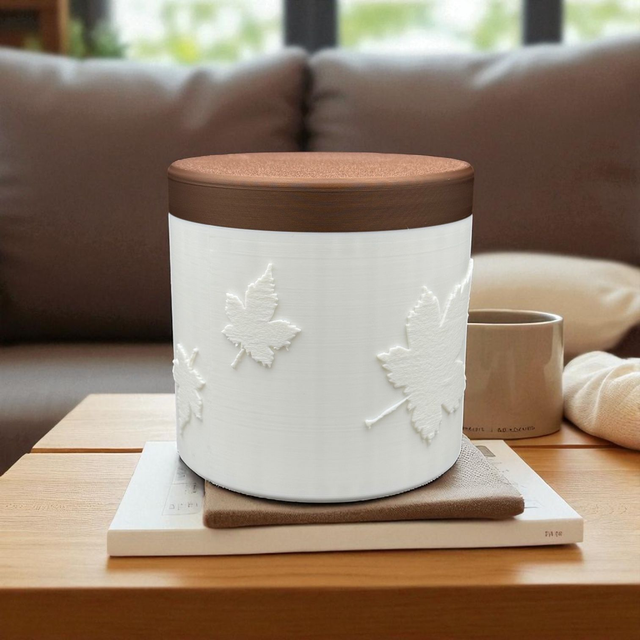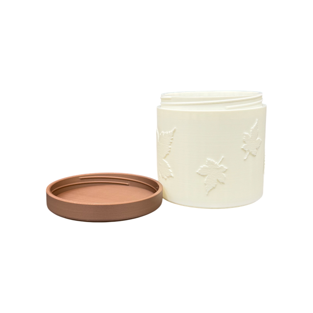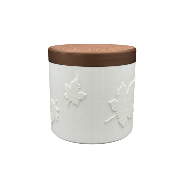 Mit ihrem rundem Format, der strukturreichen Fuzzy-Skin-Oberfläche und dem eingearbeiteten Ahornblatt-Muster ist sie nicht nur praktisch, sondern auch dekorativ. Der fest schließende Schraubdeckel sorgt für sicheren Halt und schützt den Inhalt zuverlässig.